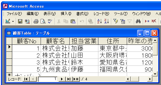 では実際に試してみます。まずテーブルをデータシートビューで表示して下さい。
