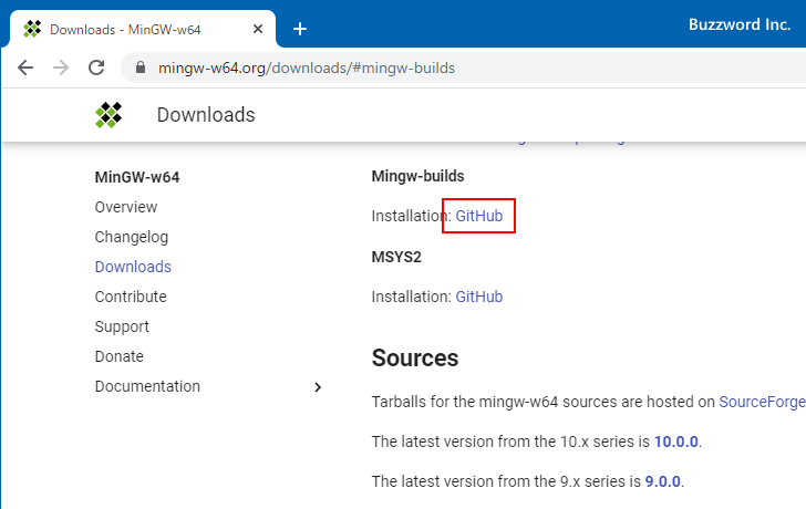 「MingW-W64-builds」をクリックしてください。移動した先に表示されている「GitHub」をクリックしてください。