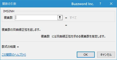 「関数の挿入」ダイアログが表示されたら関数名のところで「IMSINH」をクリックしてください。そのあとで「OK」をクリックしてください。