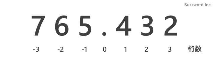 2 番目の引数には四捨五入を行う桁数を指定します。桁数は 0 を指定した場合は小数点の位置、 1 のような正の数を指定した場合は小数の部分の位置、 -1 のような負の数を指定した場合は整数の部分の位置で四捨五入が行われます。省略した場合は 2 が指定されたものとして扱われます。