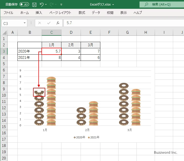 使用する画像を先ほどと同じ手順で選択すると、データ系列に画像が表示されます。