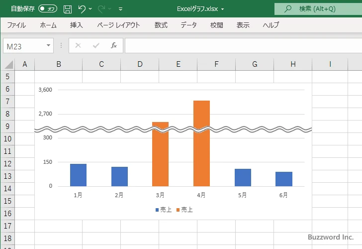 途中を波線で省略した棒グラフの作成手順
