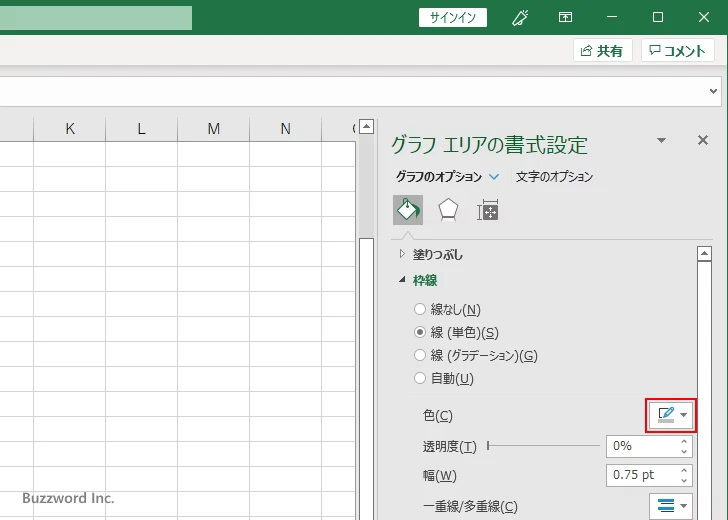 グラフエリアに枠線を表示するには「線(単色)」を選択してください。