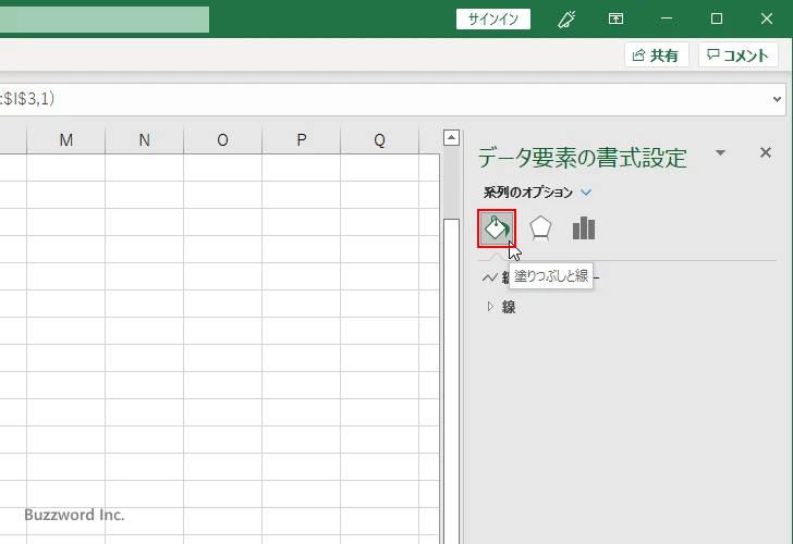 画面右側に「データ要素の書式設定」を行うエリアが表示されます。「塗りつぶしと線」アイコンをクリックして下さい。