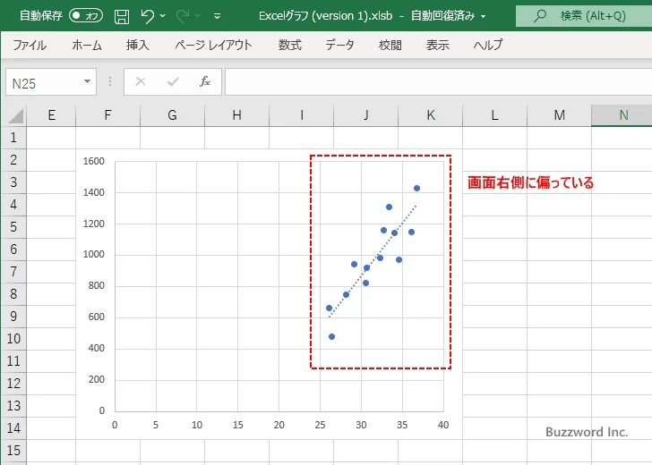 先ほど作成した散布図では、画面右側にプロットされた点が偏っていました。