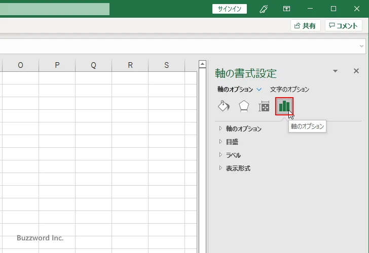 画面右側に「軸の書式設定」を設定する画面が表示されます。「軸のオプション」アイコンをクリックしてください。