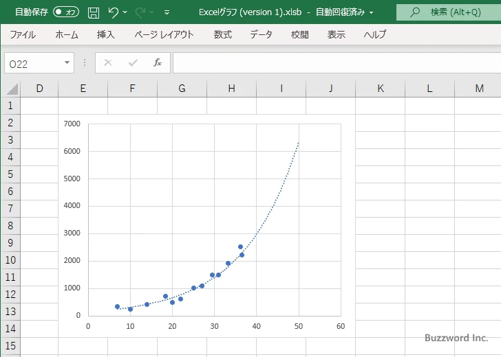 ※ 近似曲線を表示する手順については「散布図に近似曲線を表示する」を参照されてください。