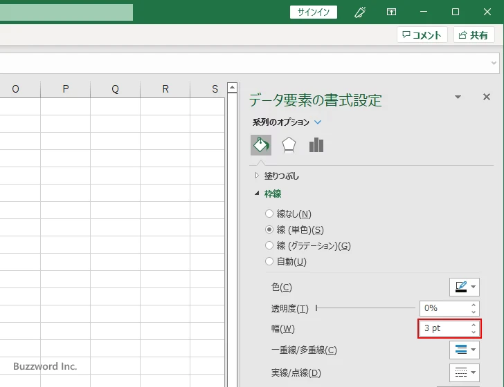 対象のデータ系列の長方形の枠線の幅が先ほど設定したサイズに変更されました。