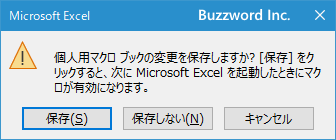 個人用マクロブックを保存するには Excel を終了させてください。すると次のようなダイアログが表示されます。