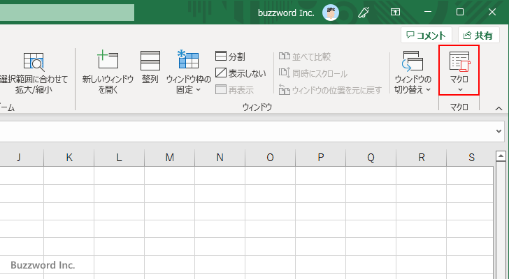 「マクロ」ウィンドウが表示されます。