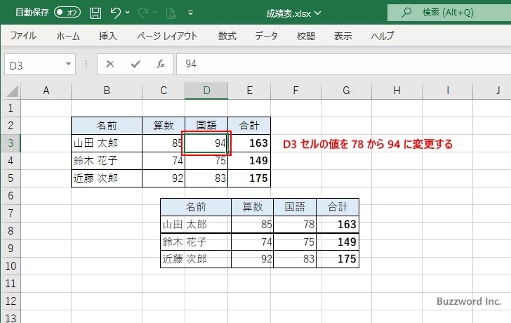 画像に変換されて貼り付けられた同じ位置のセルの値も自動的に変更されました。