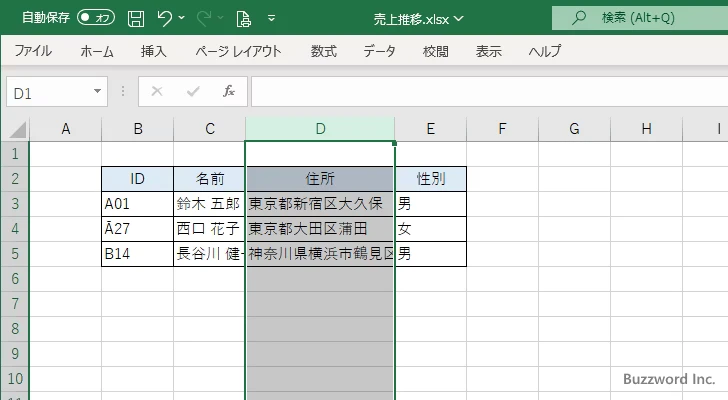 長い値が入力されている列の幅は広くなり、短い値が入力されている列の幅は狭くなりました。