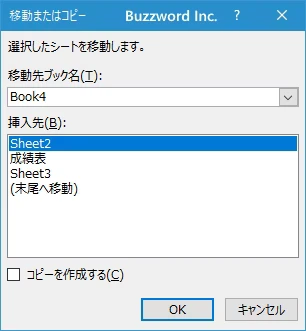 今回はワークシートのコピーではなくて移動なので「コピーを作成する」のチェックボックスはチェックしなくて構いません。最後に「OK」をクリックしてください。