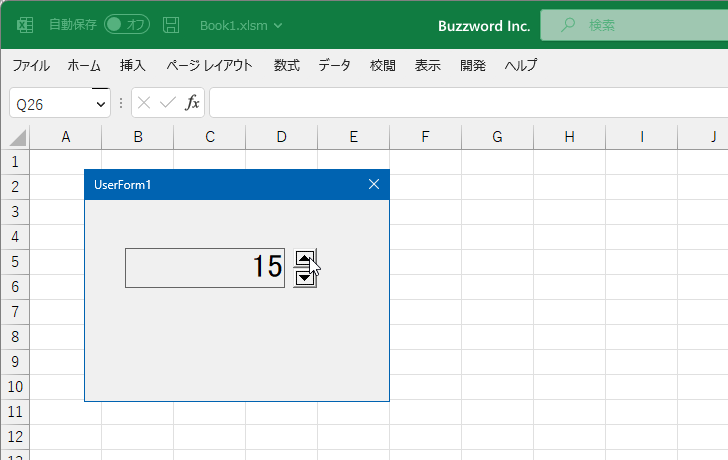 ユーザーフォームを表示すると、スピンボタンが表示されます。