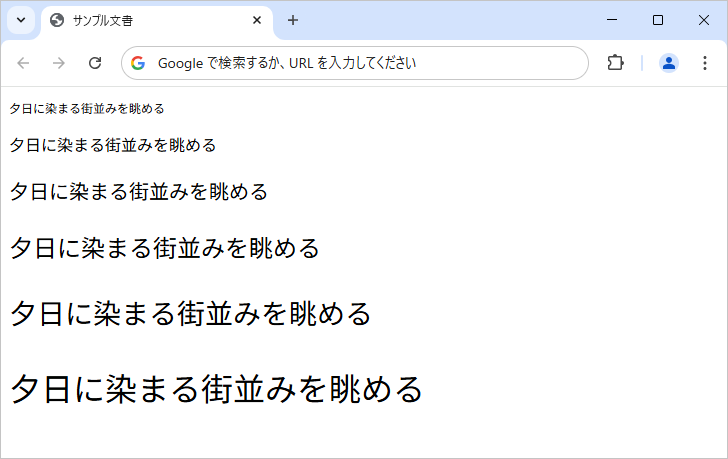作成した HTML 文書をブラウザで表示すると次のように表示されます。