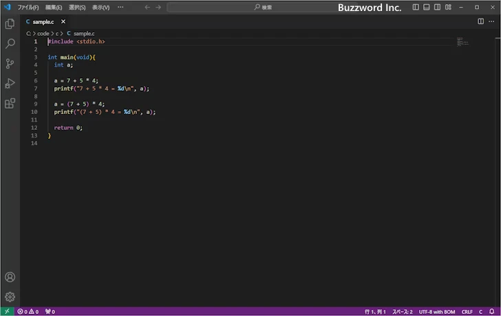 それでは実際に試してみます。次のように Visual Studio Code を起動し、ファイルを一つ開きます。