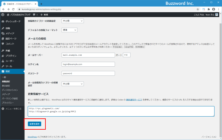PING の送信先は「更新情報サービス」の項目で設定します。デフォルトでは次のように1つだけが設定されています。