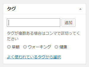 例として記事の新規公開時のテンプレートに「#tags#」を追加してみました。