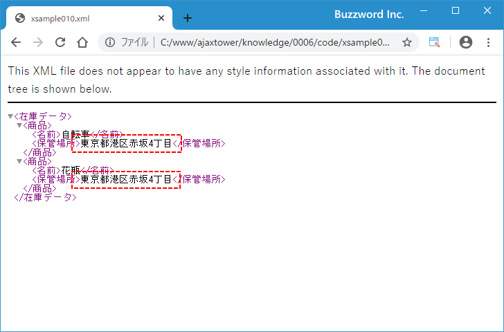 元の XML ファイルをブラウザで表示してみると次のように表示されます。